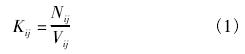 式中:Kij為*i檢定點(diǎn)*j次檢定的儀表系數(shù),L-1或(m3)-1,其中,i=1,2,3,…,m,m為檢定點(diǎn)數(shù),m≥3,j=1,2,3,…,n,n為檢定次數(shù),n≥3;Nij為*i檢定點(diǎn)*j次檢定時(shí)流量計(jì)顯示儀表測得的脈沖數(shù);Vij為*i檢定點(diǎn)*j次檢定時(shí)標(biāo)準(zhǔn)裝置測得的實(shí)際流量,L或m3。