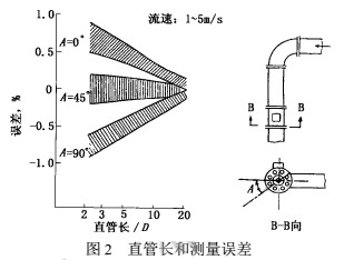 2000年上海原水公司擬在已建成的某泵站加裝DN2200化工生活污水流量計(jì),但彎管下游安裝位置的前直管長(zhǎng)度明顯不符合規(guī)定中5D~10D(D為管徑,下同)的要求,此時(shí),影響測(cè)量誤差有多大呢?