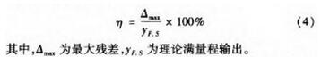 本文采用*小二乘法進行線性度評定,即擬合直線為*小二乘直線。*小二乘直線保證了傳感器至極輸出的平均值對它的偏差的平方和為*小,即可以保證擬合直線得到的結果與實測結果之間的偏差很小,更具可靠性。根據(jù)定義,線性度即是校準曲線對這條*小二乘擬合直線的偏離程度。