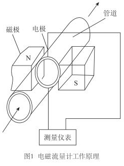 智能電磁流量計(jì)是應(yīng)用電磁感應(yīng)定律,即:導(dǎo)電體在磁場(chǎng)中運(yùn)動(dòng)產(chǎn)生感應(yīng)電動(dòng)勢(shì),而感應(yīng)電動(dòng)勢(shì)又和流量大小成正比,通過(guò)測(cè)電動(dòng)勢(shì)來(lái)反映管道流量的原理而制成的,用來(lái)測(cè)量導(dǎo)電流體的體積流量(見圖1)。工業(yè)上多用以測(cè)量水、礦漿、各種酸、堿、鹽等腐蝕液體等介質(zhì)的流量。