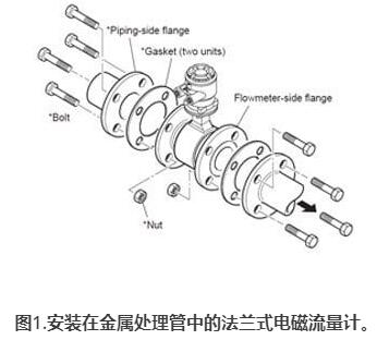 圖1.安裝在金屬處理管中的法蘭式稀硫酸流量計。