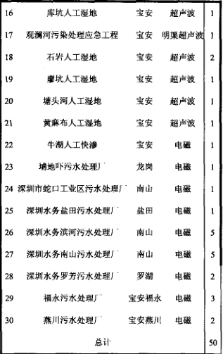 截止目前,深圳市內(nèi)外所有污水處理廠(包括人工濕地、快滲)共計30余座,重點監(jiān)控的排污流量計50余臺。統(tǒng)計數(shù)據(jù)如下表(見表1)